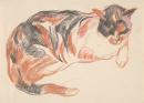 This study is modelled on Thea Proctor’s own sleeping cat. Probably the only time cats sit still long enough to be drawn in any detail is when they are asleep – moments countless artists have used to their advantage. No doubt this cat belonged to Proctor, as she named it Calico and numerous sketches by her of this beautiful cat exist. There is another drawing of Calico on the back of this sheet, which was probably removed from a sketchbook.