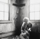 Francesca Woodman is known for her intimate black-and-white self-portraits and photographs featuring other women sitters. The bodies are often blurred, with faces hidden and appearing to blend into the background. In this self-portrait, Woodman crouches down in the corner of a decrepit room, her patterned gown somehow reflecting – or merging with – the floral wallpaper that peels down in rough remnants behind her. The photograph was created while Woodman was a student at the Rhode Island School of Design in Providence, where she studied from 1975 to 1978 and which produced the majority of her extant photographs following her untimely death in 1981.