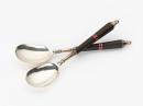Pair, pear shaped bowl and lower stem silver cast in 1 piece, main stem ebonite with central Perspex band.