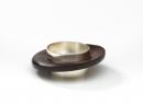 Silver bangle with large shaped ebony outer ridge of changing plane.