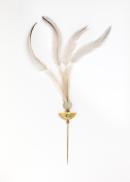 gold, porcelain, chrysophase, emu feathers