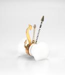 18 ct gold, enamel, silver, opaque synthetic polymer resin stand
