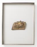 Roughly rectangular panel depicting square enclosure contained w/in 2 hollow rectangles