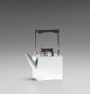 Cubiform, square handle in silver and wood attached to body on round hinges, straight spout, circular lid
