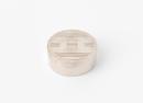 Cylindrical silver box, cover engraved with three concentric circles, straight and wavy lines.