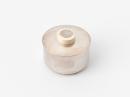 Cylindrical silver box with foot ring, cover with turned ivory finial.