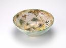 Pale creamy white body, painted in the interior with a design of six kangaroos and two lizards among grasses, ferns and 'black-boys', details incised through the glaze, exterior with green glaze which has run and become mottled