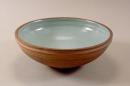 Reddish body, interior celadon glaze, exterior unglazed. Made from clay from Torquay, Victoria.