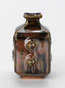Squared with circular relief decorations on sides, iron glaze, made at Kyoto Kiln