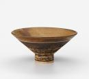 Pugoon (N.S.W.) clay with high alumnia ochre glaze, banded with cobalt glaze, unglazed areas textured with copper oxide, fired at 1300°C in oil-fired kiln.