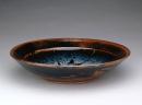 Iron glaze with wax resist decoration with chun glaze over all, wide shallow shape with flattened rim
