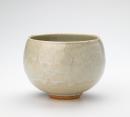 Pale greyish blue glaze on globular shape, glaze thicker on upper part of bowl with some crazing close to the rim. Pale buff body.