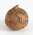 Spherical form, short narrow flattened neck, hand built, impressed/beaten decoration.