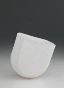 "White pot vertical/horizontal lines", unglazed, carved parallel, horizontal & vertical bands