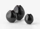 Spherical forms tapered towards the nipped-in aperture, rusty-brown to black tenmoku glaze