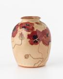 Ovoid vase with short neck and angled lip. The buff-coloured ground decorated with large incised crime poppies with trailing stems.