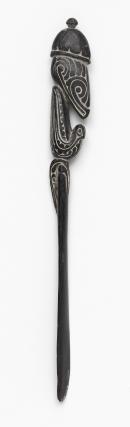 Composite figure of three stylised birds with 'cap'. Incised patterns heightened with lime.