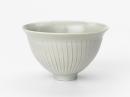 Medium Clear glaze, slightly everted rim, tapering to small foot, sides cut with vertical facets