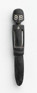 Single figure, upper torso, circle on chest. Incised surface patterns heightened with lime.