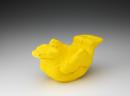 Slip-cast, bright yellow glaze. Half-man, half-reptile resting on its stomach.