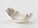 Form with rounded base and raised, wavy edges ressembling a seashell, with crackle glaze.