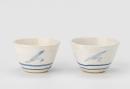 Blue on white decoration, each cup with two lines near base and three calligraphic motifs.