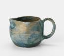 Squat jug; interior and exterior with mottled blue and greenish glazes.