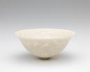 Lace bowl with everted rim and narrow foot, unglazed, decorated all over with pierced pattern