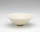 Lace bowl with everted rim and narrow foot, unglazed, decorated all over with pierced pattern.