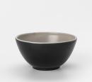 Near-hemispherical bowl, the interior in grey, the exterior in dark brown satin glaze.