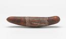 Tubular shaped container with a circular opening at one end. Carve and incised elongated oblong patterns with half herringbone and concentric patterns at the centre of container heightened with lime.