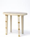 Oval top set with slab grey marble, bordered with vertical fluted frieze, four tapering square-in-section legs.