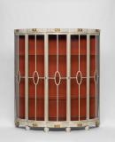 Bow-fronted, five-lobed enclosed by fove full-length glazed doors or windows, fluted frieze and plinth.