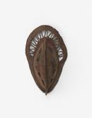 Woven yam mask with ridge running along the centre of mask. Traces of pigment.