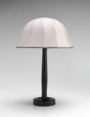 A turned shaft on a turned base, metal superstructure to support shade (lacking).