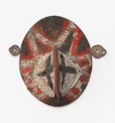 Stylised woven circular shaped mask with two ears protruding on either sides