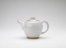 Globular teapot with loop handle with flattened facet for thumbrest, and broad-based spout, the lid with circular concave knop, decorated with grey glaze and a line in darker grey on the upper body and lid.