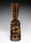 Flared neck above bulbous body, gold-coloured glass with painted decoration, various inscriptions