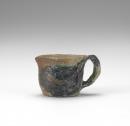 Small jug in the style of Merric Boyd with treetrunk handle and sweeping branches in relief on the body, decorated in dark blue, green and brown.