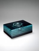 "Ringed Black Echo" rectangular solid of 6 fused laminations of clear and black sheets.