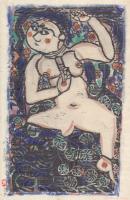 inscribed in red pencil on reverse l.l.: Shiko Munakata / C # 89 Japanese song (A)