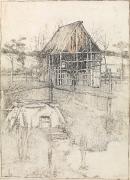inscribed in pencil on reverse l.c.: Well and Barn.. Tasmania. / Pen drawing by Ernest Moffit / property of Lionel Lindsay (el Lind underlined)
