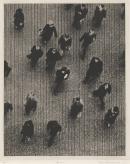 In the 1970s, Australian artist Bea Maddock embraced the photo-etching process, which incorporates pen and ink. She regularly used found images as the basis for these works. In Square, Maddock overlaid an image of people in a crowd, taken from ‘a book on movement of people in cities’, with a grid structure. As she said, ‘The actual grid comes from the windows in the National Gallery School, Victorian College of the Arts ... the windows had little grills on them ... and so they got drawn in because that’s how I saw the world – through those windows.’