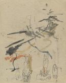 pencil, pen and ink and watercolour