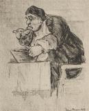 bowls (vessels) dining forks (flatware) men (male humans) seated figures spoons