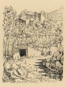 hills houses rocks (landforms) stylisation trees