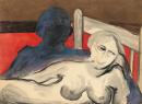 inscribed in purple crayon on reverse l.c.: Man + Woman in bed / About / 30 gms