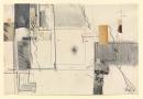 pencil, red pencil and collage of cut and torn printed colour illustrations and paper