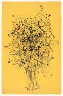 brush, pen and coloured inks on yellow paper