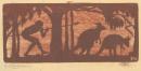 linocut printed in tan ink on tissue paper